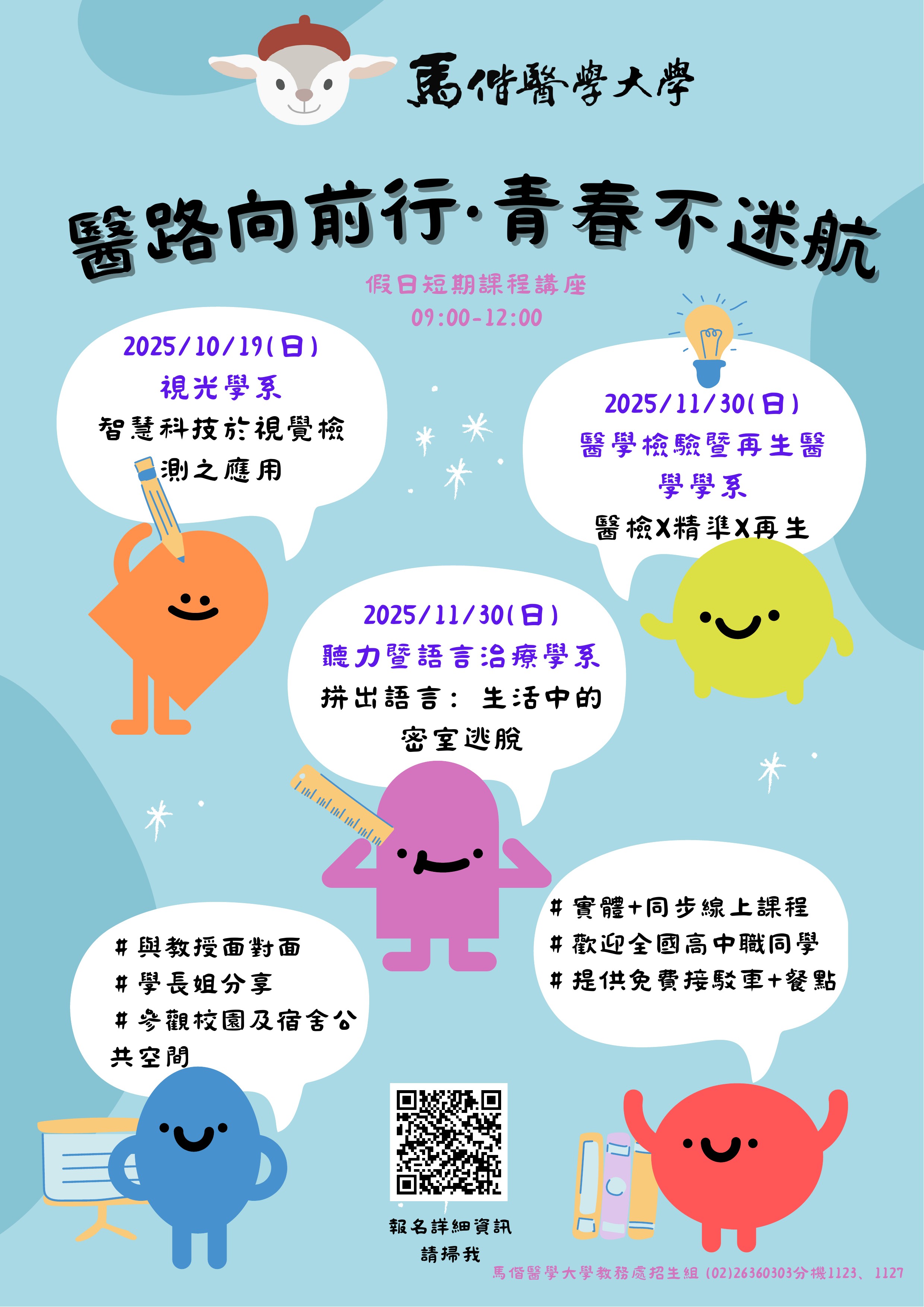 校園公告 公告主旨 馬偕醫學大學 – 醫路向前行青春不迷航 發佈日期 2025 年 10 月 15 日 發佈單位 實驗研究組 公告類別 營會研習 公告等級 轉知 點閱次數 26 公告內容 相關附件 【2025-10-14】內政部委託財團法人法律扶助基金會辦理住宅租賃糾紛處理及諮詢業 ...