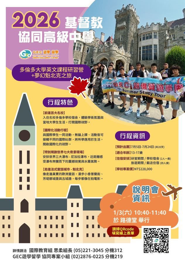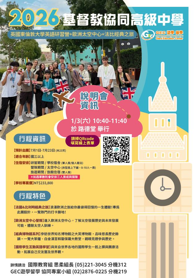 | 公告主旨 | 2026 協同暑期遊學團說明會 ✈️🌍 |