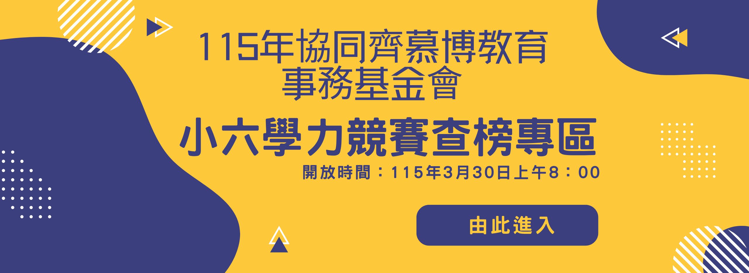 | 2025-11-10 | 置頂協同齊慕博教育事務基金會 115學年度『小六競賽』活動簡章 | 最新消息 | 註冊組 | 2,237 |