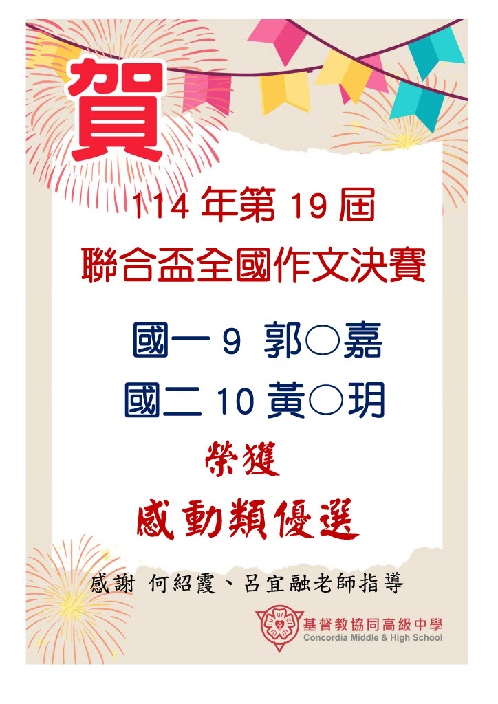 | 2025-09-10 | 轉知財團法人邱創煥文教基金會「114年(第十六屆)績優清寒孝親獎助學金」申請相關資料 |